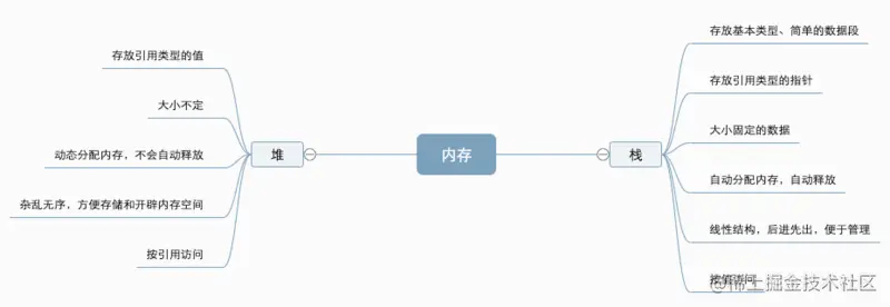 基本类型保存在栈内存,引用类型的值保存在堆内存,存储该值的地址(指针)保存在栈内存中,这是因为保存在栈内存的必须是大小固定的数据,而引用类型的大小不固定。