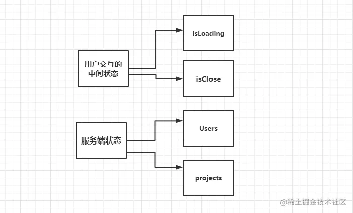 另外,现在的前端项目特别是单页面应用,会使用Flux、Redux、Mobox等状态管理库,会把组件间共享的数据都存放在状态管理库中,这些可以分为两类,一类是用户交互的中间状态,比如isLoading,isClose,modalVisible等等,另外一类就是服务端状态(数据)