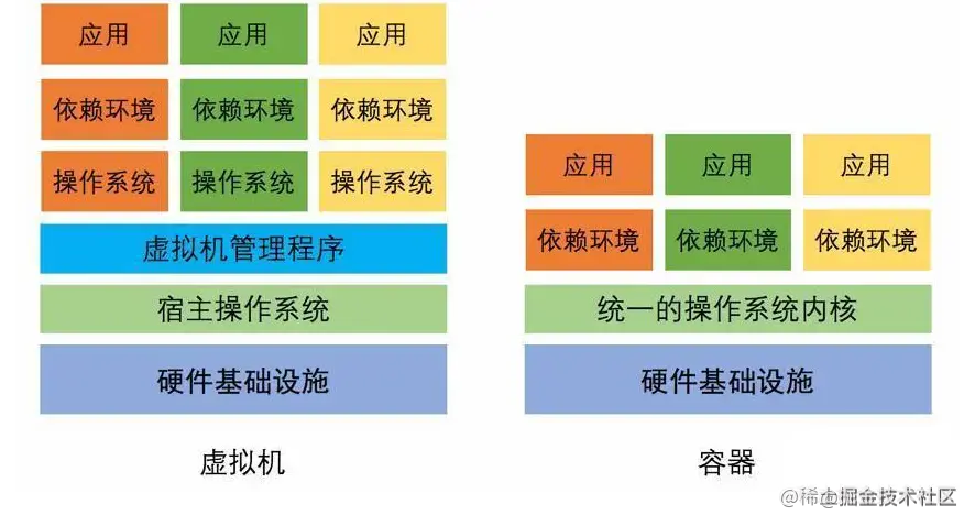 - 迁移和扩展太慢:如果需要迁移应用,或者扩展应用,都要再准备其他的物理服务器,过程很麻烦,也很慢。
