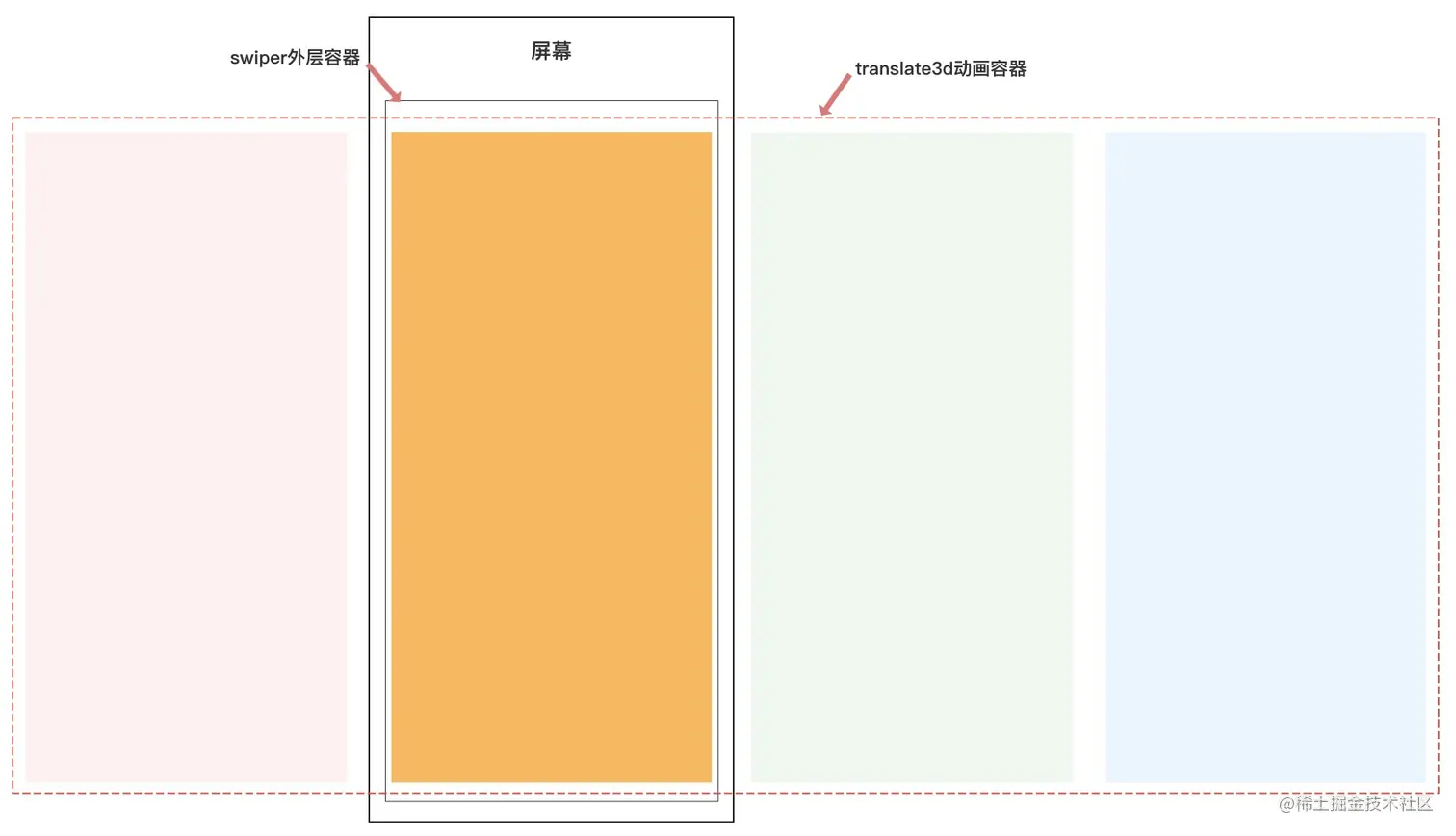 在水平方向横滑浏览时,为了能达到最好的流畅度,我们采用的是translate3d,实现结构如下;当translate3d作用于在一块较大图层时是会偶现闪屏问题,猜测与合成图层(Compositing Layer)的实现有关系,在合成渲染加速架构中使用了translate3d的渲染图层会被提升为合成图层,每个合成图层会拥有自己独立的纹理缓存与相应的管理机制;但即便是拥有独立的纹理缓存管理,也同样受限于底层OpenGL最大纹理尺寸大小(2000 * 2000像素点)。而网上常规的解法为每个滑块添加