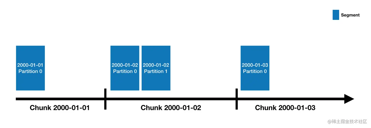 Druid数据存储在datasource中,类似于传统RDBMS中的表(table)。每个datasource都按时间(其他属性也可以)分区(partition)。每个时间范围称为一个“块(Chunk)”(例如,一天,如果您的数据源按天分区)。在一个Chunk内,数据被分成一个或多个 “段(Segment)”。每个段都是一个文件,通常包含多达几百万行数据。如下图13所示。