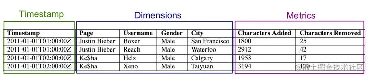时间戳也是Druid数据模型的必备项。尽管Druid不是时序数据库,但它也是存储时序数据的自然选择。Druid数据模型可以支持在同一个datasource中,可以同时存放时序数据和非时序数据。因此,Druid不认为数据点是“时间序列”的一部分,而是将每个点单独处理以进行摄入和聚合。比如正统的TSDB支持的时序数据插值计算,在Druid中就不复存在的必要了。这会给一些业务场景的处理带来很大的便利性。