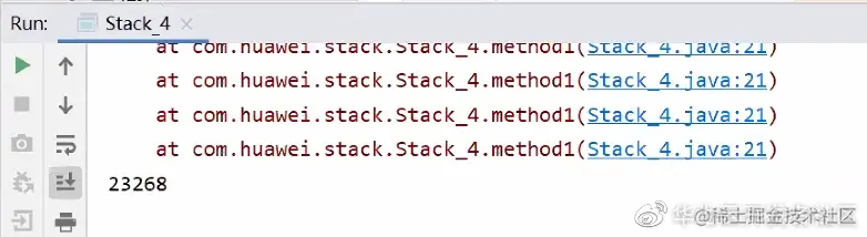 我们发现当我们调整了虚拟机栈的大小后执行了4315次方法后内存就溢出了,而调整虚拟机栈之前,我们是23268次,很明显我们可以通过-Xss参数调整虚拟机栈的大小来控制内存的溢出情况。
