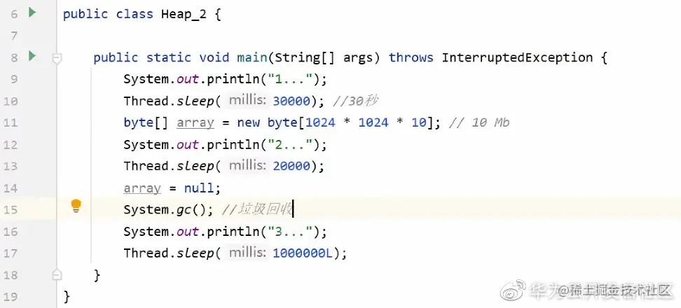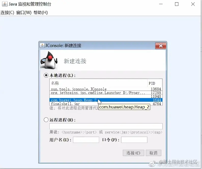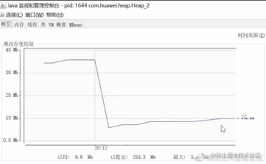 下面我们通过运行代码后通过jconsole可视化图形工具,来查看堆内存的使用情况。
