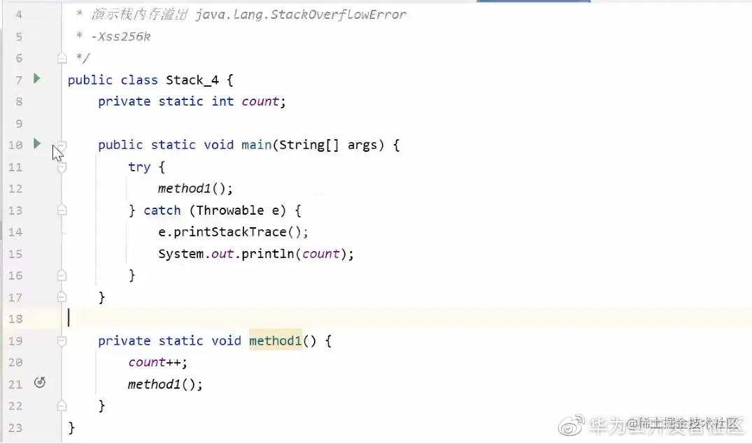 无限递归调用(栈帧过多)的小实验,method1()方法在主方法中无限调用自己,那么会发生什么情况呢?