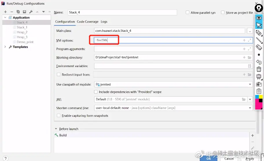 接着我们通过设置一个虚拟机栈的大小是256k试试会发生什么?