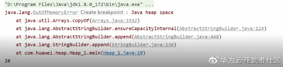 在执行了26次之后,果断的后台报了堆内存溢出错误。