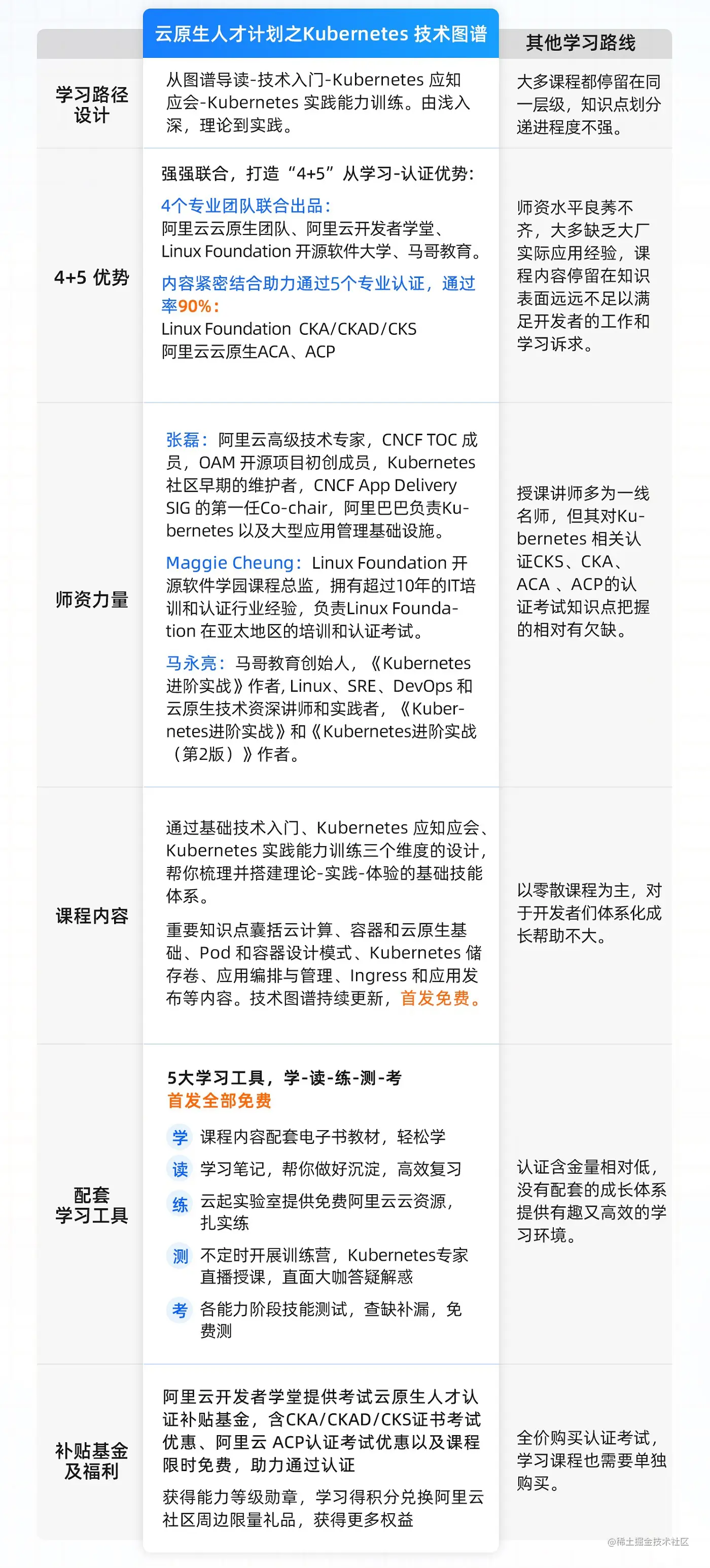 Kubernetes 知识图谱为云原生人才培养计划 2.0 推出的第一个系列内容。本课程由 Linux Foundation 开源软件大学、知名 IT 教育平台马哥教育、阿里云云原生团队专家联合出品,阿里云大学、阿里云开发者社区联合开发,遵循云原生人才学习路径搭建课程体系框架,及人才发展路线设置不同阶段,由浅入深,帮助云原生人才学习容器基础、Kuternetes 网络、存储、资源对象、服务发现、应用编排与管理等 Kubernetes 完整技术栈内容,贯穿理论、实践、体验,为广大云原生领域人才完成相关认证资格提供积累专业技能的基础环境。