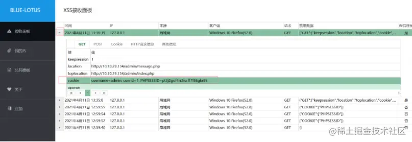 我搭的这个平台:BlueLotus_XSSReceiver 蓝莲花
