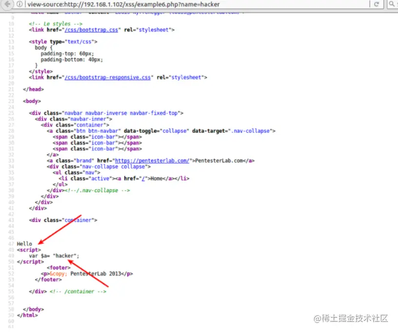 回看以下注入完代码的网页代码,发现我们一直都在制造巧合。。