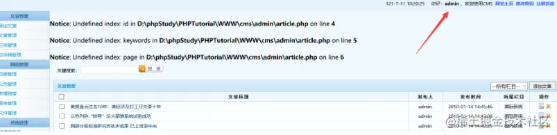 5,这里用cms文章管理系统作测试