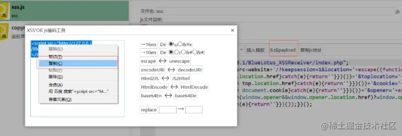 4,点击生成payload,将编码复制