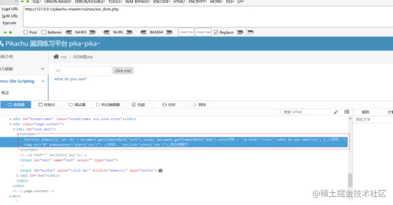 思路:输入的语句并不会直接执行带有恶意的XSS payload语句,而是通过传递恶意语句到某些参数从而达到间接执行的目的。