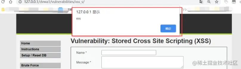 这样我们就能在DVWA上看到弹窗了。