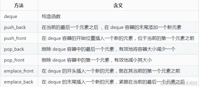 deque(['dek])(双端队列)是double-ended queue 的一个不规则缩写。deque是具有动态大小的序列容器,可以在两端(前端或后端)扩展或收缩。