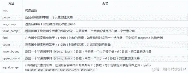 map 是关联容器,按照特定顺序存储由 key value (键值) 和 mapped value (映射值) 组合形成的元素。