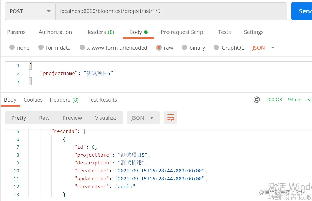 新增项目的接口已经实现,接下来实现项目列表接口。
