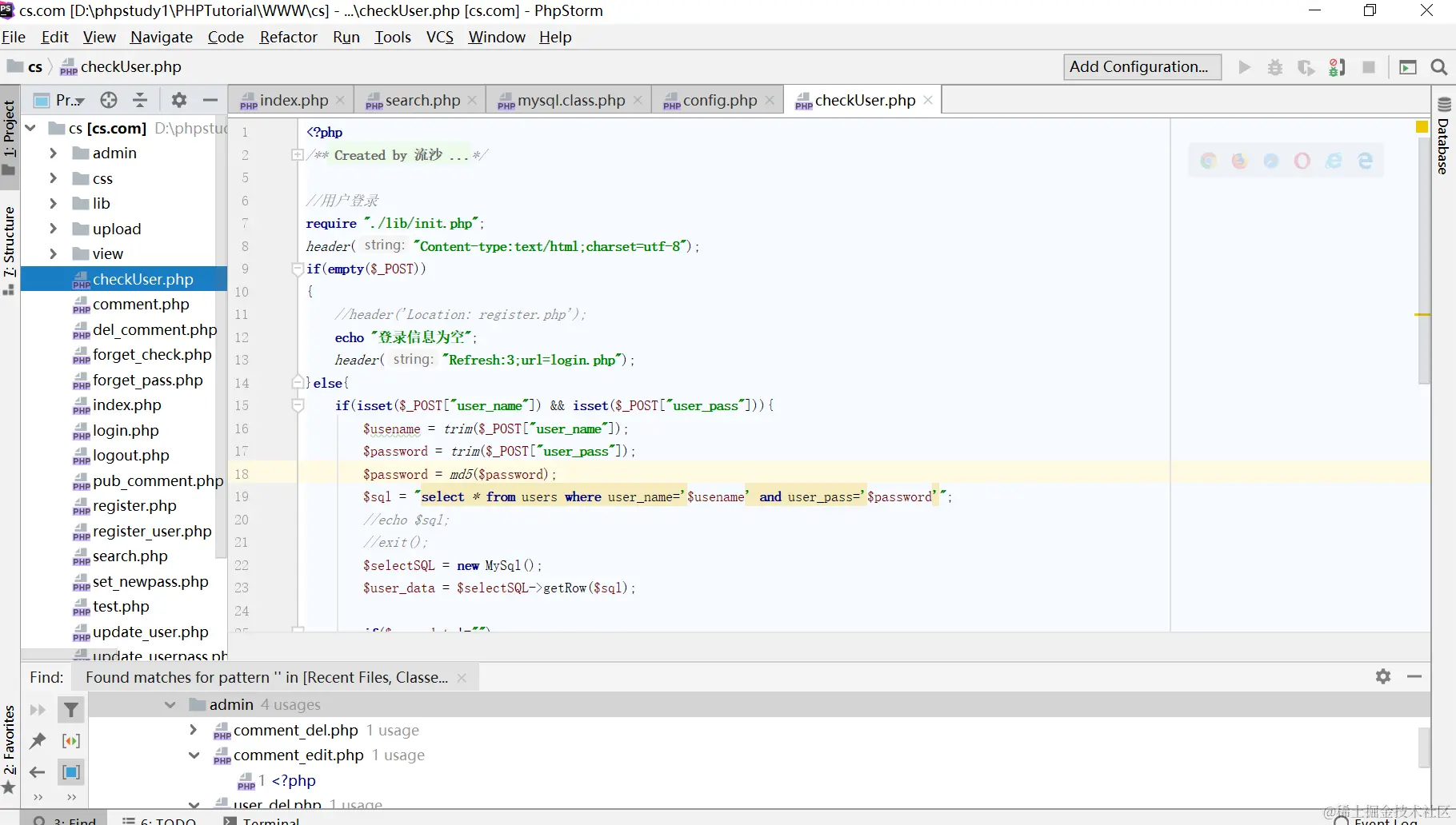 你们可以去实验一下 使用万能密码登录用户的时候,他是第一条数据 不是后面的数据,这次简单的代码理解就到这里