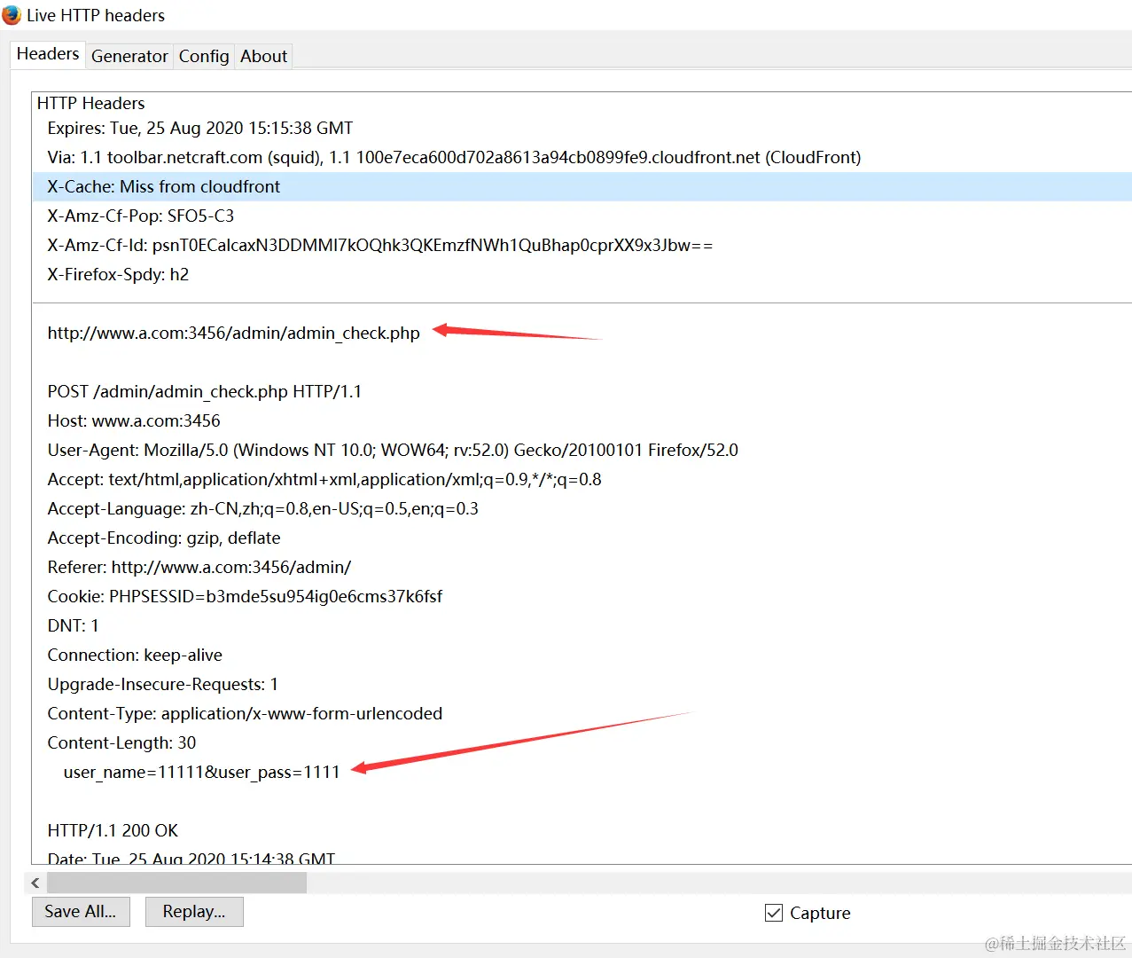 我这边使用的是或火狐插件 live HTTP headers 来抓包的 网上有xpi 可以直接安装