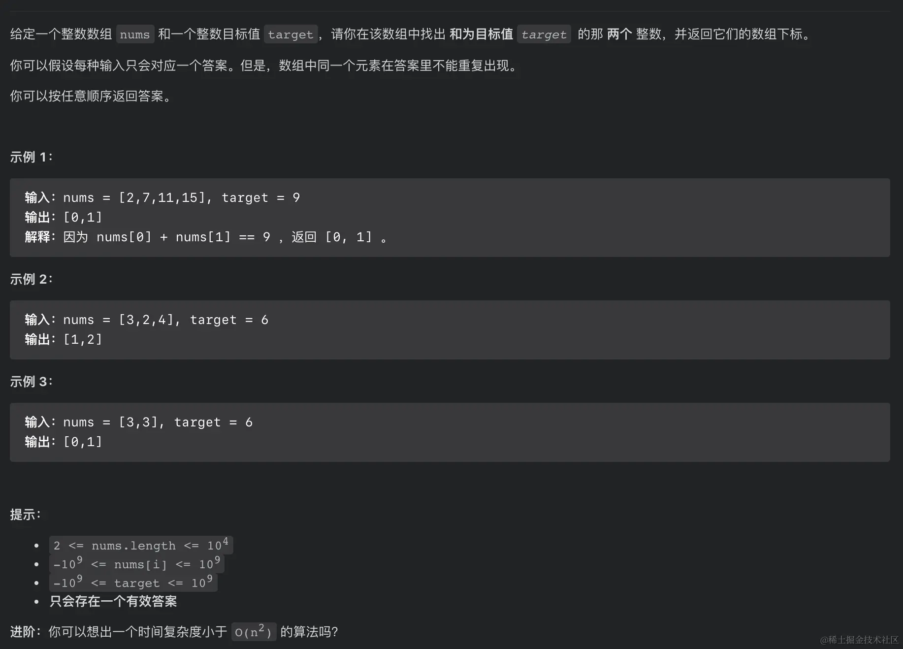 //看map中是否有差值,有的话直接返回下标,没有的话加入map