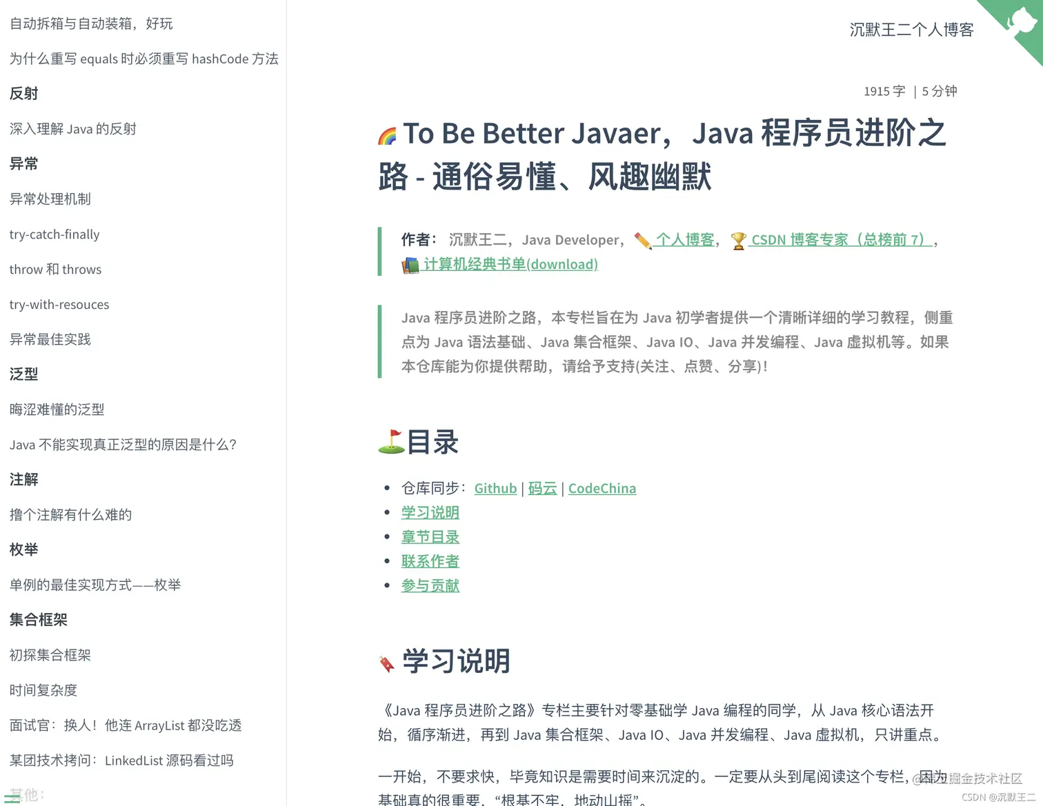 推荐一下二哥在 GitHub 上开源的《Java 程序员进阶之路》专栏吧!风趣幽默、通俗易懂,对 Java 初学者极度友好和舒适😘,内容包括但不限于 Java 语法、Java 集合框架、Java IO、Java 并发编程、Java 虚拟机等核心知识点。