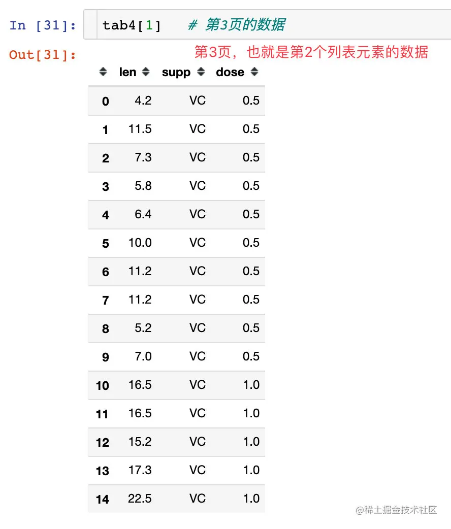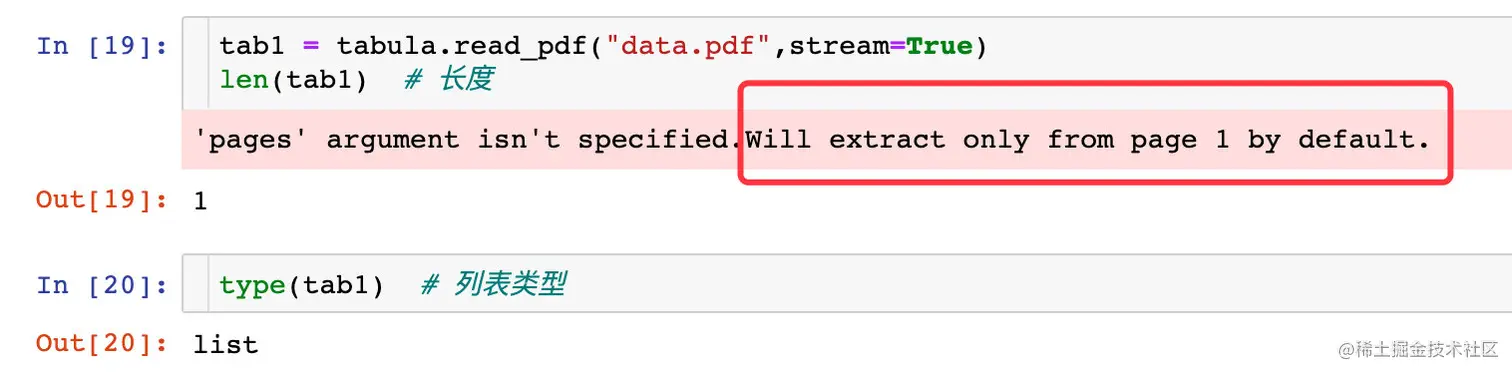 上面的红色提示中我们看到:当没有指定pages参数的时候,只会默认读取第一页的数据,所以列表的长度为1。