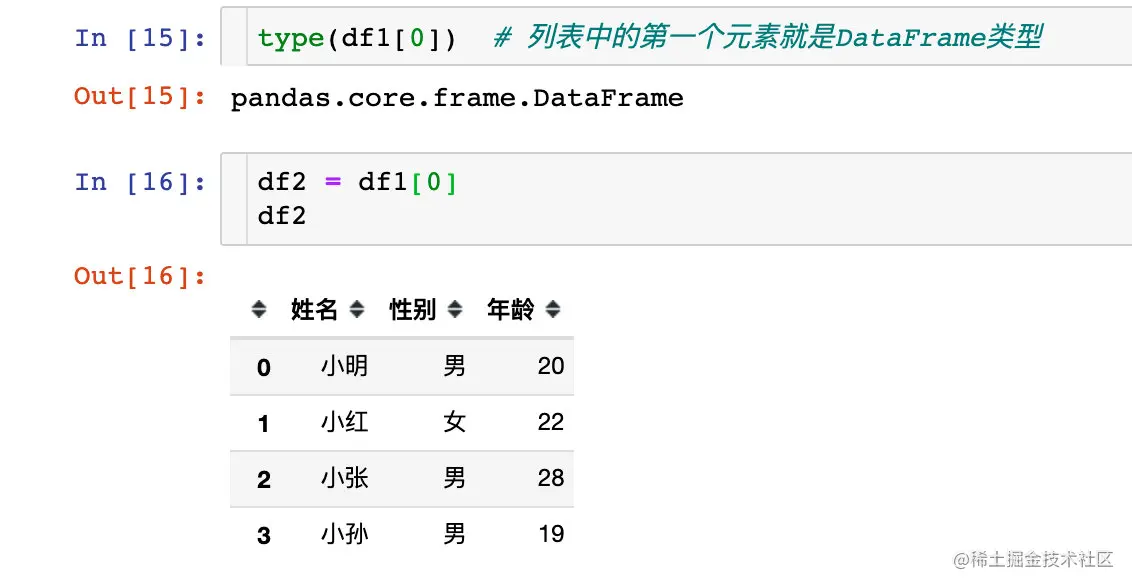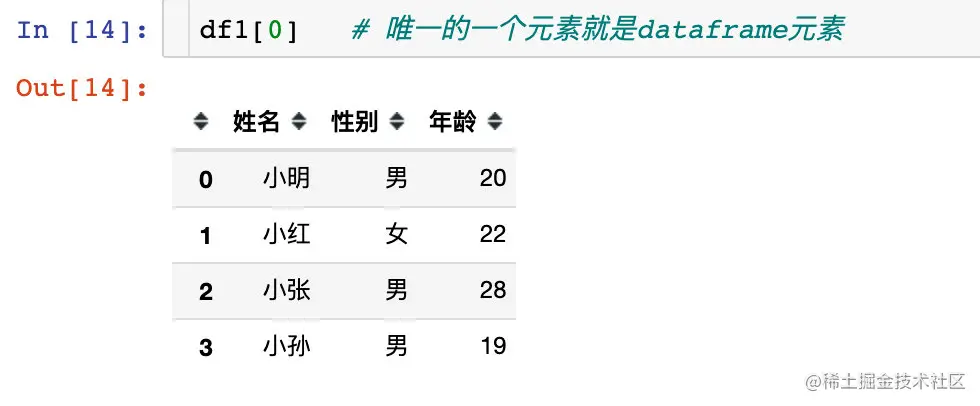 然后我们发现列表中唯一的一个元素就是dataframe: