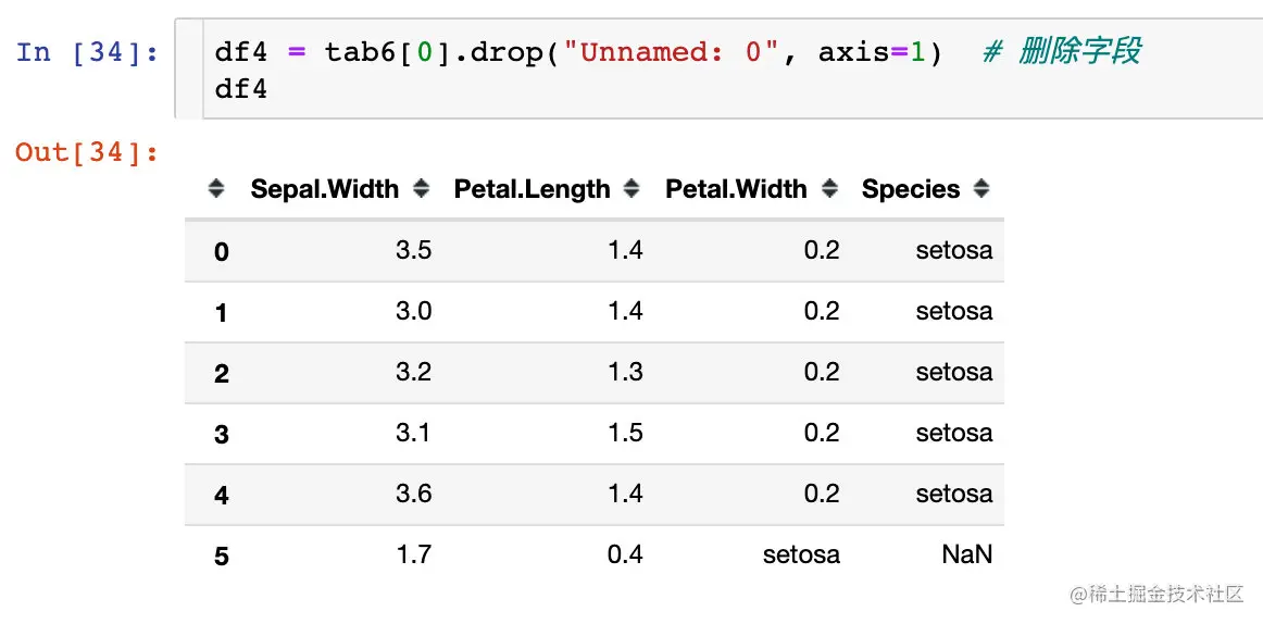 删除在读取的表格中我们不需要的字段信息