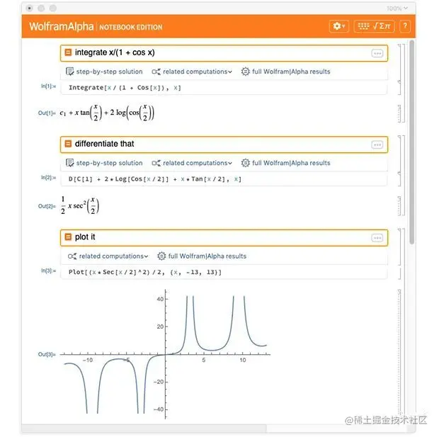 Wolfram Alpha Notebook Edition的使用方法类似有些类似于Jupyter Notebook,但是,只需和它用自然语音对话就能解题。