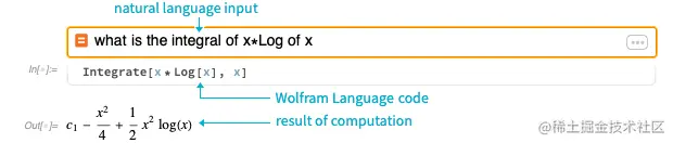 Wolfram Alpha Notebook Edition也能精确翻译成xlog(x),而不会误解成其他意思。