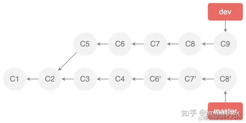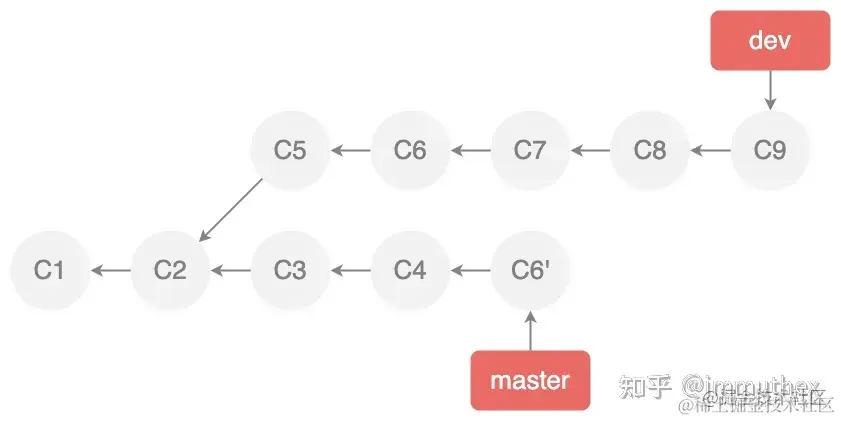 需要把dev的C6合并到master,只需在master分支上执行git cherry-pick C6,就会把dev分支的C6应用到master分支上并产生一个新的commitC6'。