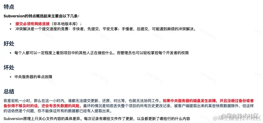 除了Git之外,有些公司使用的是SVN,Subversion属于集中式的版本控制系统,集中式的版本控制系统都有一个单一的集中管理的服务器,保存所有文件的修订版本,而协同工作的人们都通过客户端连到这台服务器,取出最新的文件或者提交更新。