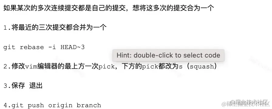 如果你在某个分支连续提交了多次,这个时候想将这些提交的结点合并成一个,使提交记录看起来简洁一些,那么git rebase HEAD i就是一个很好的命令