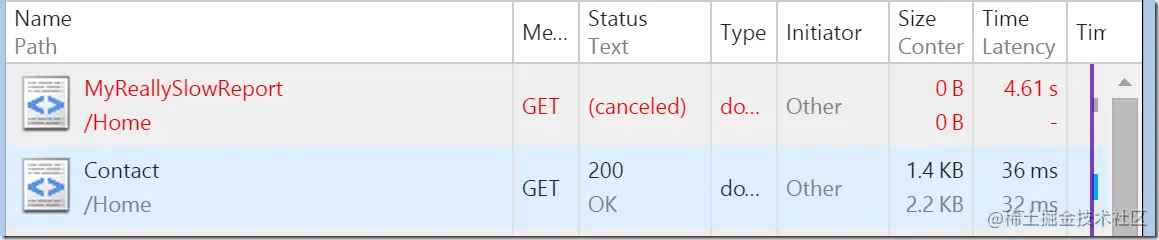 访问 MyReallySlowReport页面,等待5s,最终他们放弃了,去了其他页面:
