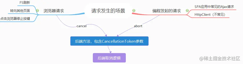 - 请求不但可以从浏览器发起,ajax也可以发起, 在SPA程序中极其常见,故取消机制需要关注SPA应用的ajax取消