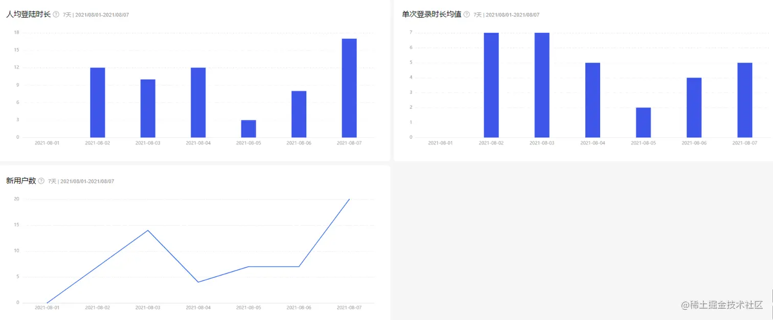 用户分析看板从活跃用户、活跃用户登录时段分布、人均登录时长、留存表现等角度着手,详细全面地呈现了当前应用的使用情况,帮助开发者全盘掌握用户动态,并在此基础上合理调优分配运营资源。