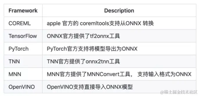 每个深度学习框架都有自己独有的格式来解释和存储网络模型,并且这些框架的侧重点不同,有些用于训练学习,有些用于部署推理。在深度学习算法开发中,在不同的阶段会选择不同的框架,所以模型描述格式的不同,在客观上造成了深度学习算法开发和落地的困难。