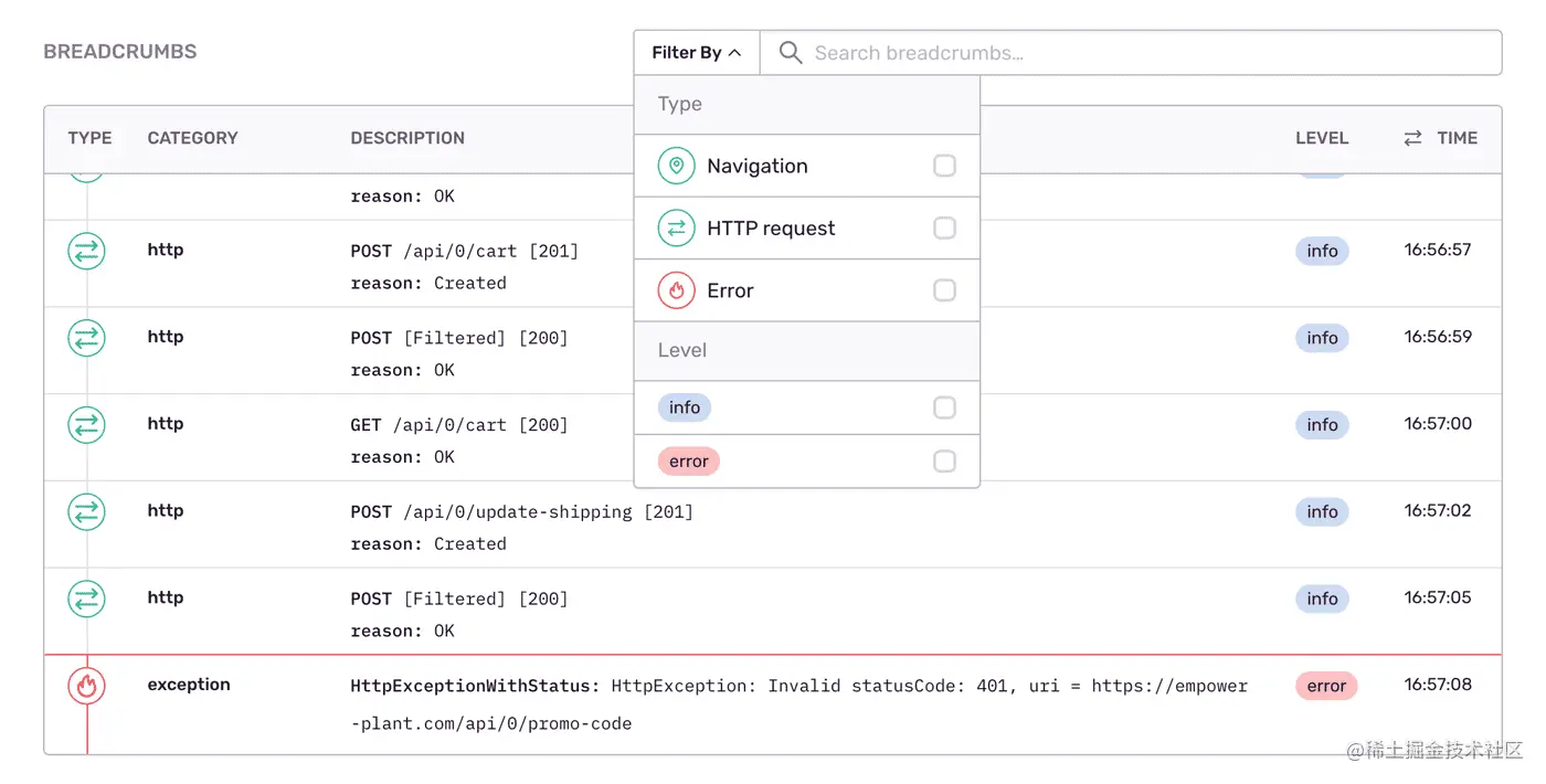 此外,开发人员可以监控Dart/Flutter和Native SDK(Kotlin、Android的Java、Swift、iOS的Objective-C,以及两个平台的C/C++)。我们还对Flutter应用程序进行符号化,捕捉UI事件和HTTP请求作为breadcrumbs,以便您可以跟踪每个用户的足迹。在用户的设备离线或发生致命崩溃的情况下,Sentry提供离线缓存和致命崩溃支持。在这些情况下,一旦设备再次上线,Sentry将能够发送报告,所以你不会错过这些有价值的报告。