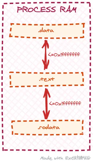 但有一个注意点。如果我们检查规范,我们会发现R_X86_64_PC32重定位产生的32位输出与R_X86_64_PLT32重定位相似。这意味着.text中的补丁位置和被引用的符号之间在内存中的 "距离 "必须足够小,以适应32位的值(正/负符号为1位,实际数据为31位,所以小于2147483647字节)。我们的加载器程序使用mmap系统调用来分配对象部分副本的内存,但是mmap几乎可以在进程地址空间的任何地方分配映射。如果我们修改loader程序,为每个部分分别调用mmap,我们最终可能会使.rodata或.data部分与.text部分映射得太远,将无法处理R_X86_64_PC32重新定位。换句话说,我们需要确保.data和.rodata部分在运行时相对靠近.text部分。