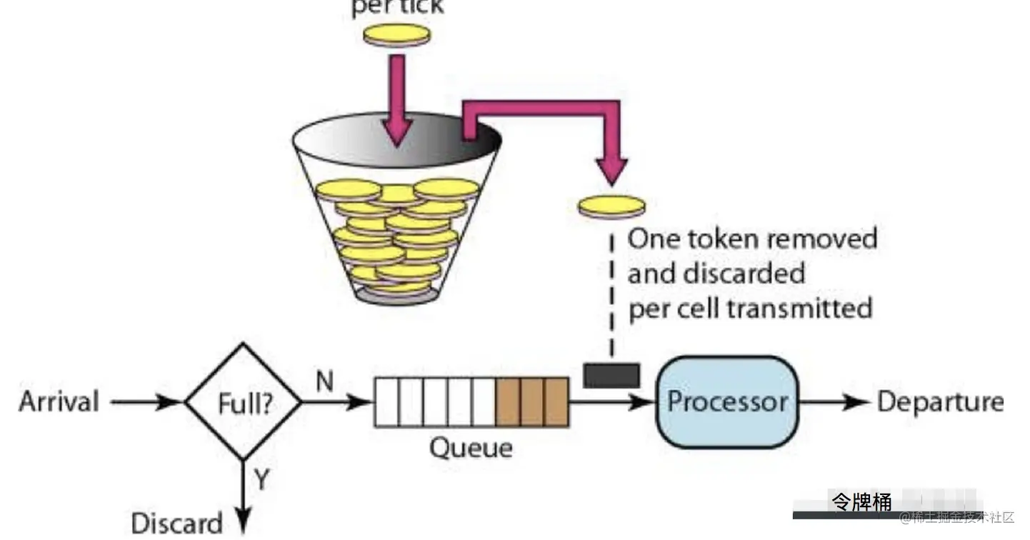 - 如果获取不到,该请求就要被限流,要么直接丢弃,要么在缓冲区等待。