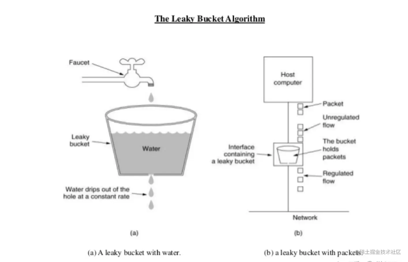 漏桶限制的是常量流出速率,即流出速率是一个固定常量值,比如都是1的速率流出,而不能一次是1,下次又是2,从而平滑突发流入速率;