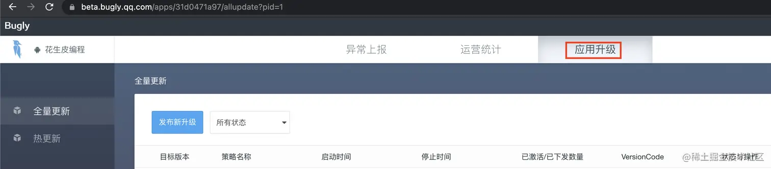 4、 点击“应用升级”,再选择“发布新升级”