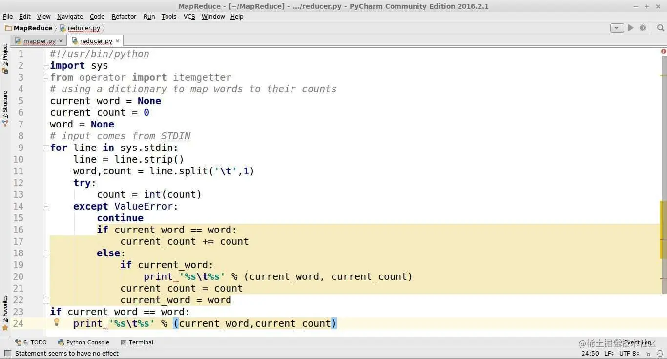 Python MapReduce 代码: