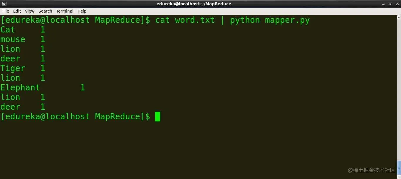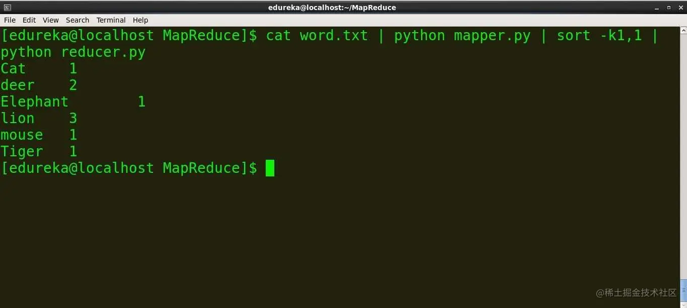 我们可以看到映射器和减速器按预期工作,因此我们不会面临任何进一步的问题。