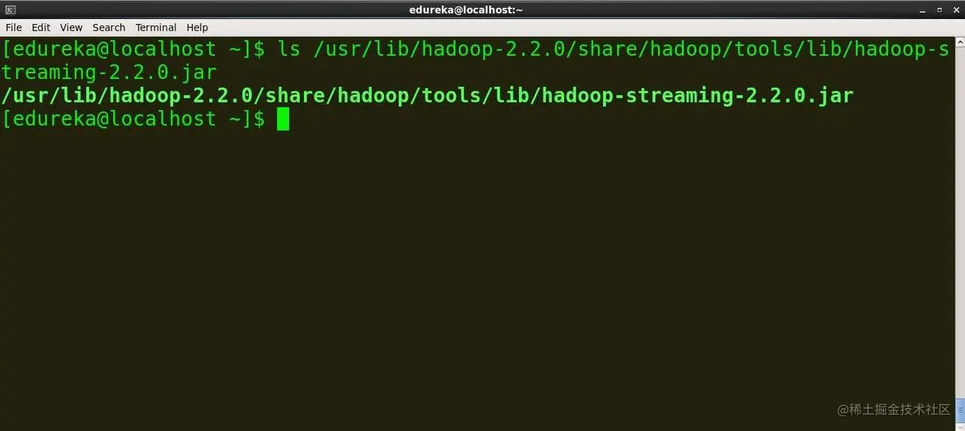 因此,在您的终端上找到 Hadoop Streaming jar 并复制路径。