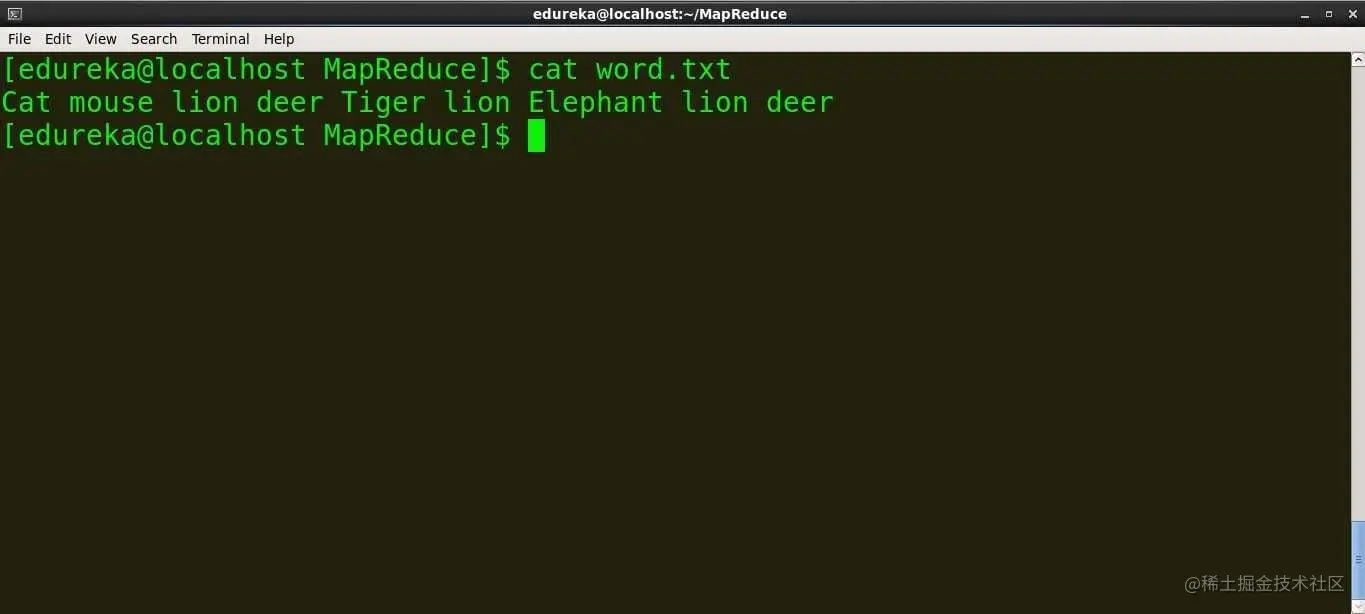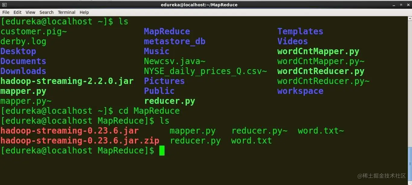 命令:hdfs dfs -put/home/edureka/MapReduce/word.txt /user/edureka