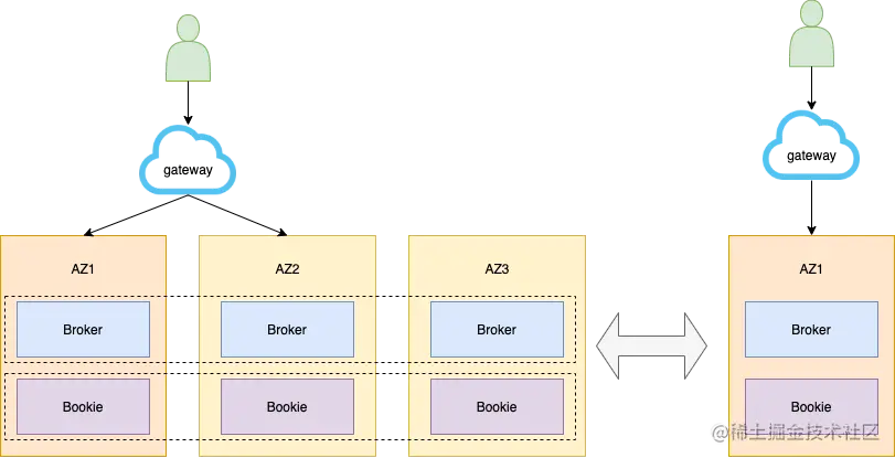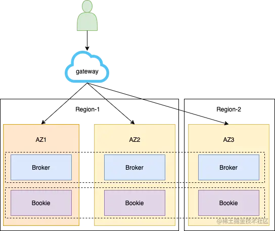 Apache Pulsar 具备跨机架、跨区域感知的能力,云上的运营端配合 Broker 中bookkeeperClientRackawarePolicyEnabled、bookkeeperClientRegionawarePolicyEnabled、bookkeeperClientSecondaryIsolationGroups 等参数,就能实现上述能力。