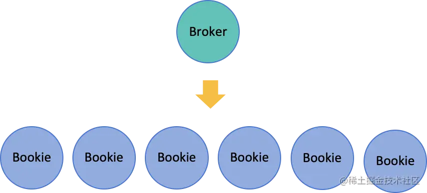 Broker 不保存数据,Broker 通过 BookKeeper Client 把数据保持到 BookKeeper 集群中,每个节点我们称为 Bookie。最终还是无法避免 Bookie 是有状态的,问题又回到了原点,有状态的 Bookie 又如何实现平滑扩容呢?